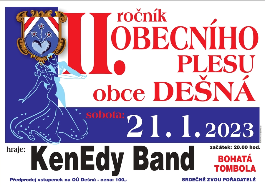 Předprodej vstupenek na OÚ Dešná - cena 100,- Kč.